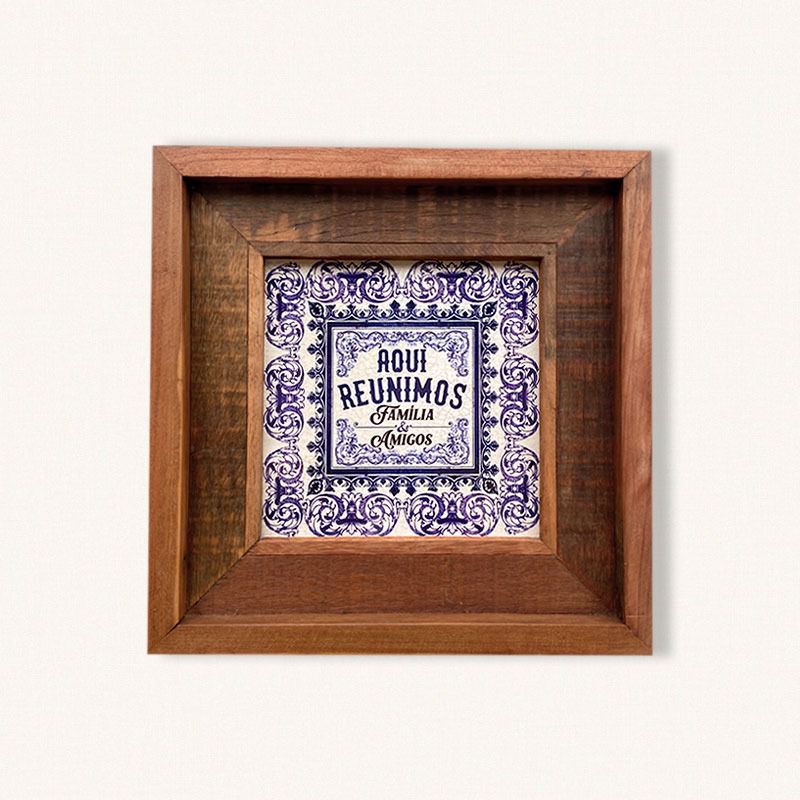 Quadro moldura madeira demolição, miolo em azulejo dimensões 32cm X 32cm