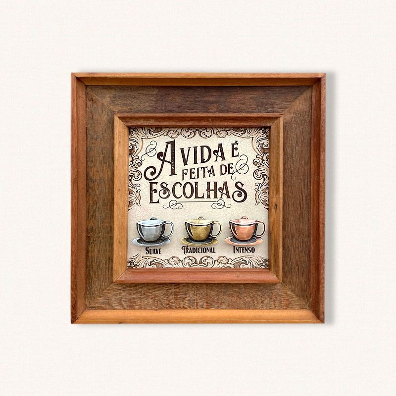 Por isso criamos este quadro — um tributo visual ao prazer simples e profundo de um bom café fresco. Feito com azulejo de alta qualidade e moldura em madeira de demolição, cada peça é única, assim como os momentos que esse ritual nos proporciona.