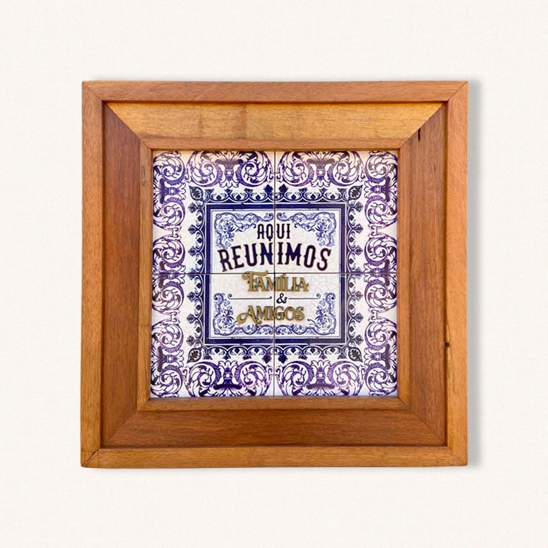Quadro moldura madeira demolição, miolo em azulejo dimensões 44cm X 44cm MEDIDA EXTERNA