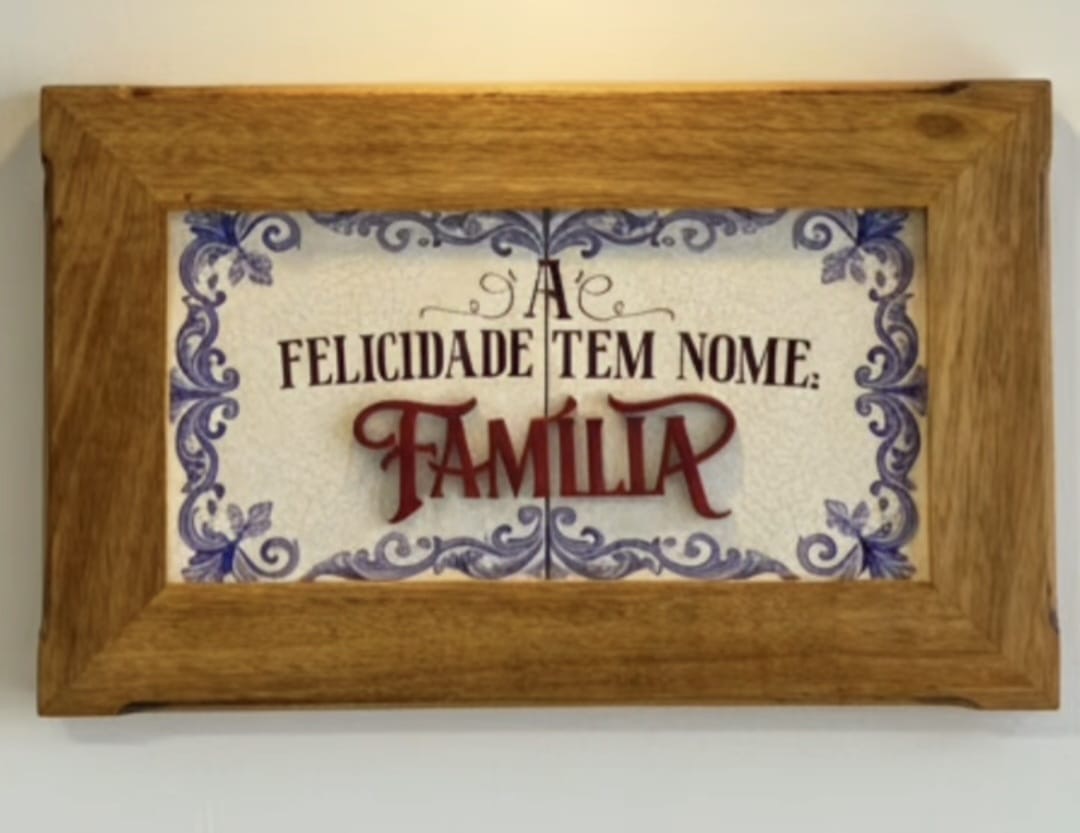 Quadro em madeira de demolição com miolo em 2 AZULEJOS, apliques em relevo no tamanho de 34cm x 52 cm